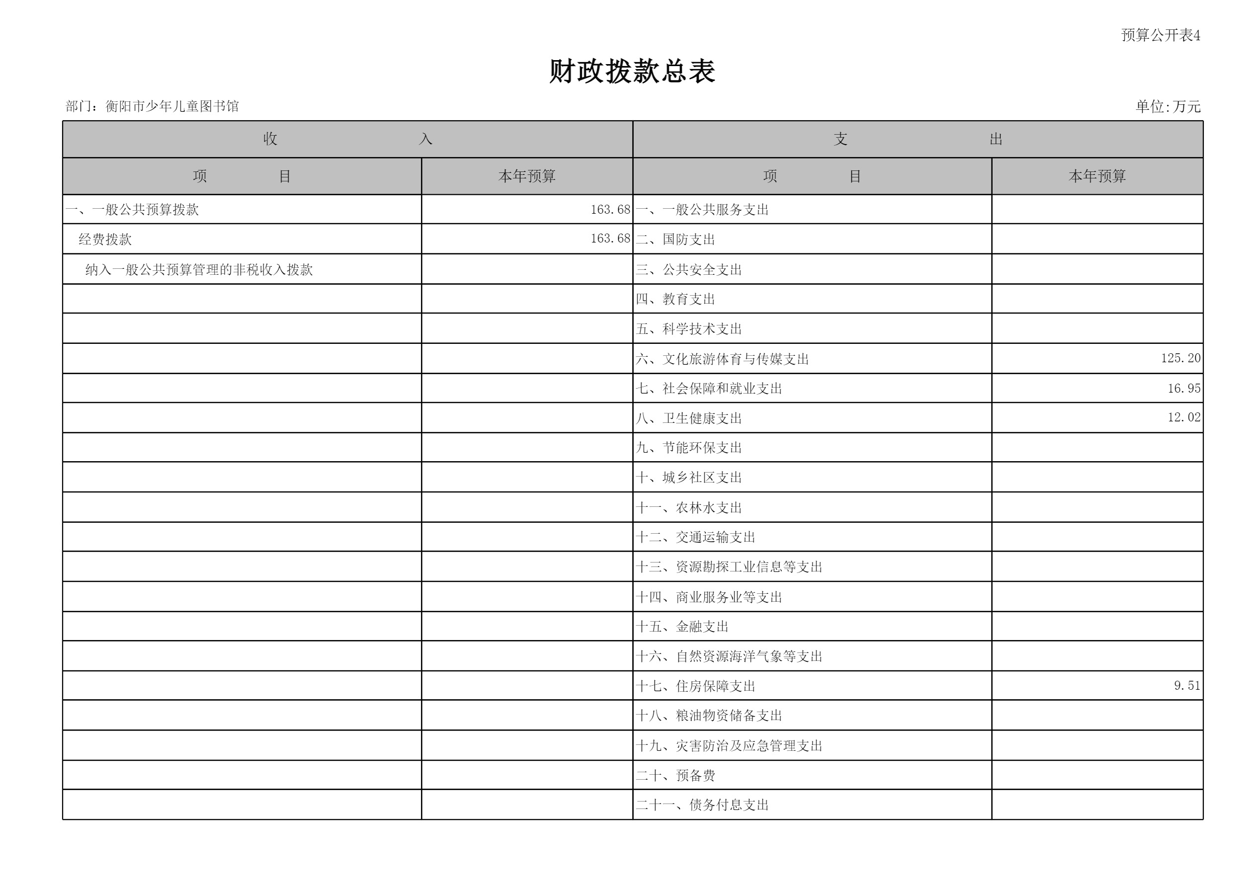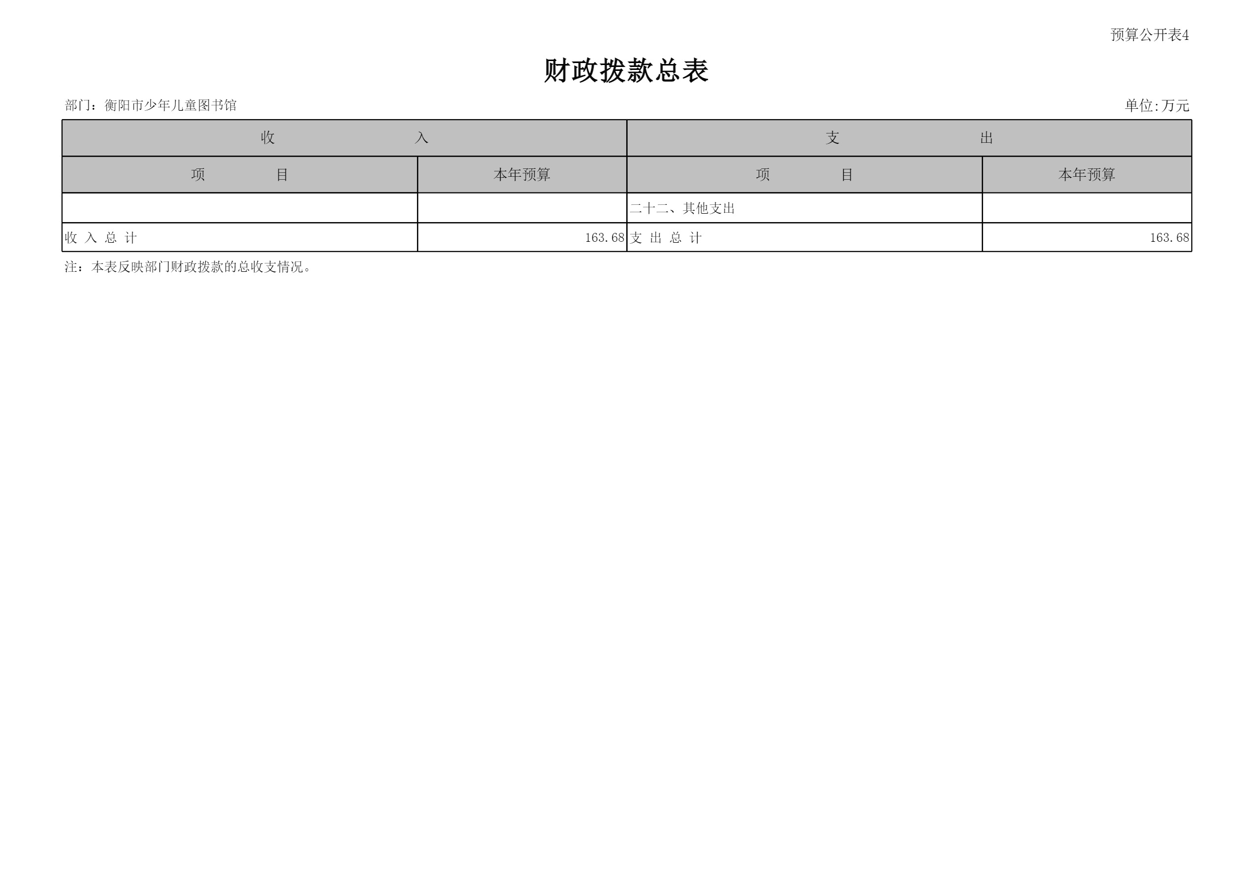 衡阳市少年儿童图书馆2024年预算公开